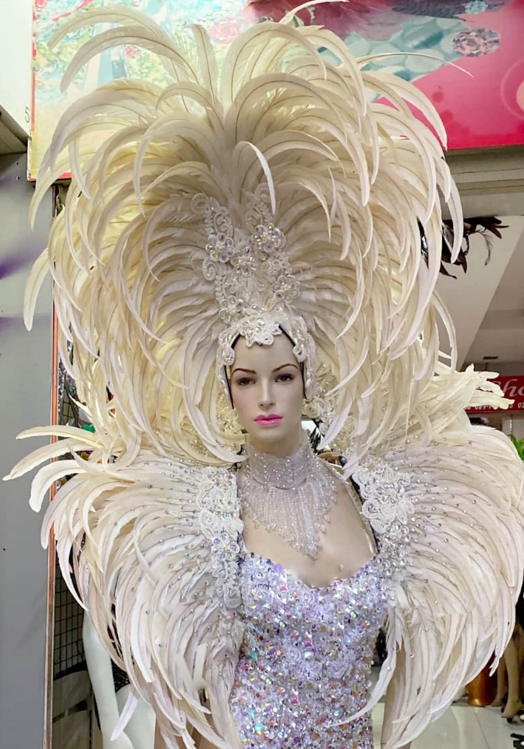 Da NeeNa C045 Showgirl Feather Headdress Backpiece Dress Gown Costume Set XS-XL
