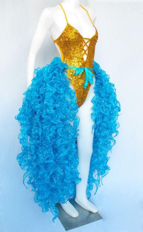 Da neena s001w burlesque organza dot star ruffle showgirl skirt tail bustle