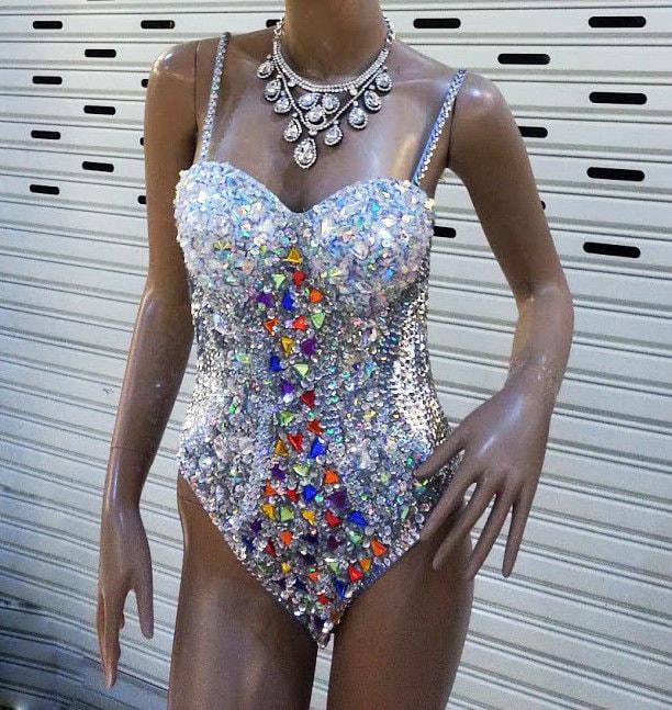 DaNeeNa L1023 Sexy Star Drag Vegas Stage Showgirl Crystal Leotard Bodysuit XS-XL