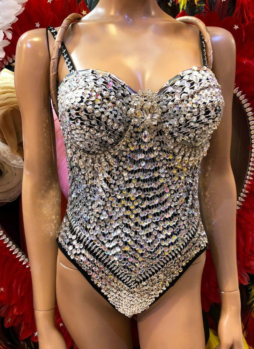 Da NeeNa M885 Crystal Flower Cher Vegas Burlesque Showgirl Leotard Bodysuit XS-XL