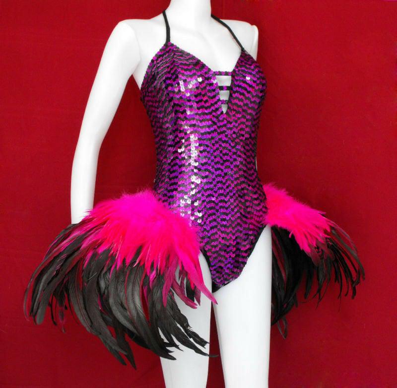 Da NeeNa L032 Showgirl Cabaret Bead Sequin Dance Feather Swan Leotard XS-XL
