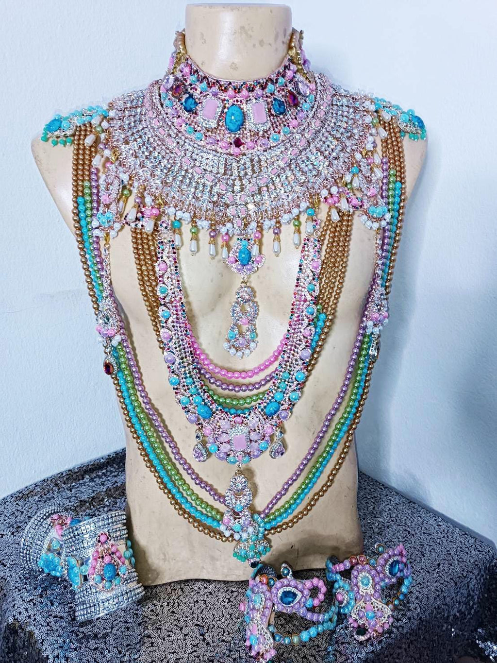 Da neena c1002 hut the shining eyes showgirl dance vegas crystal headdress& shoulder pieces