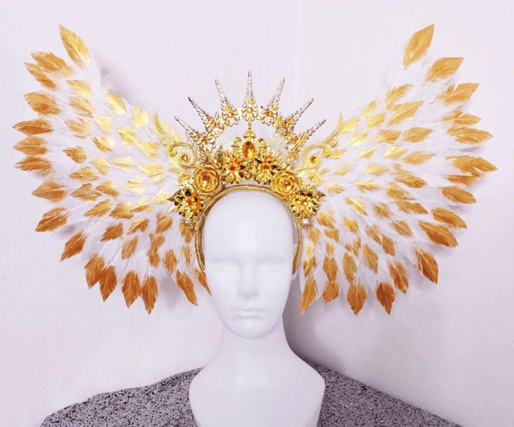 Da neena H1144 GOLD Chinese New year Asian Flower Vegas Cabaret Showgirl Pageant Headdress